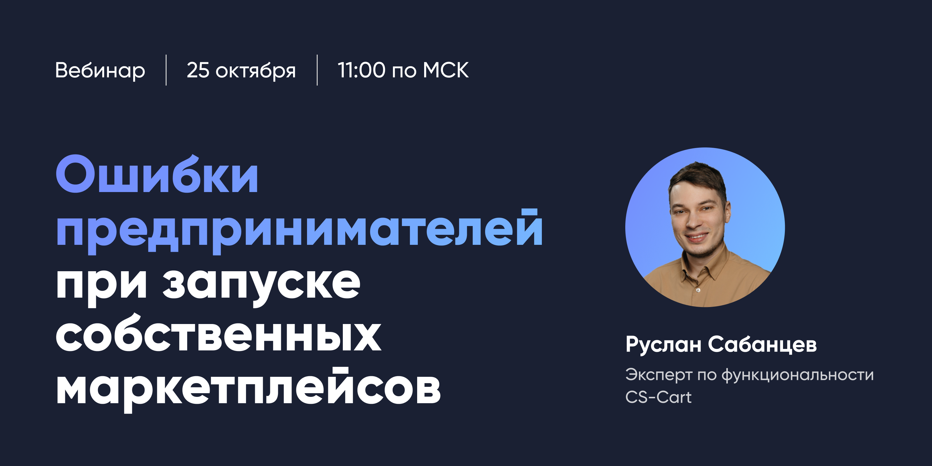 1 Мин Валерия Соловьеваот24.10.2023Приглашаем на вебинар: “Ошибки предпринимателей при запуске собственного маркетплейса” Здравствуйте! Приглашаем принять участие в вебинаре от CS-Cart на тему: “Ошибки предпринимателей при запуске собственных…