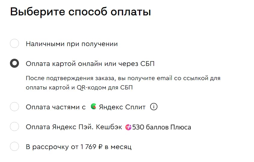 - Приоритизация СБП. Система быстрых платежей была добавлена в список способов оплаты и предлагалась первой, если клиент не был готов оплатить наличными.