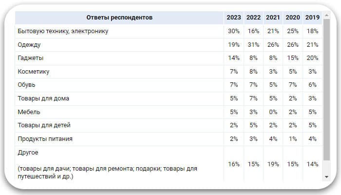 Среди самых популярных категорий — бытовая техника и одежда. Тройку замыкают позиции для дома, ремонта или дачи.