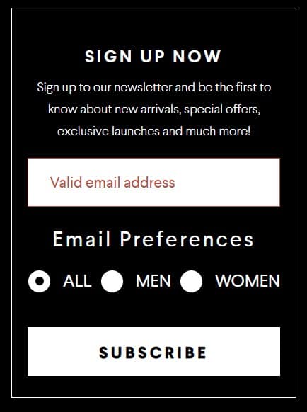 Northskull учитывает пол покупателя при предложении подписаться на их новости
