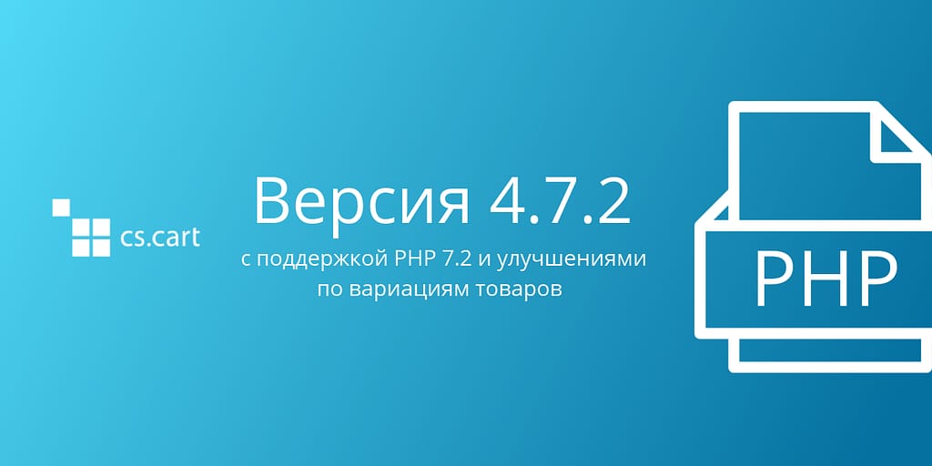 - Добавлена поддержка PHP 7.2. Мы проверили работу CS-Cart 4.7.2 на PHP 7.2 и внесли необходимые изменения в код. Обратите внимание, что для работы некоторых зарубежных способов оплаты (WestPac, ServiRed, DPS PX Access и SagePay) на сервере должно быть установлено расширение mcrypt, которое по умолчанию не установлено в PHP 7.2.