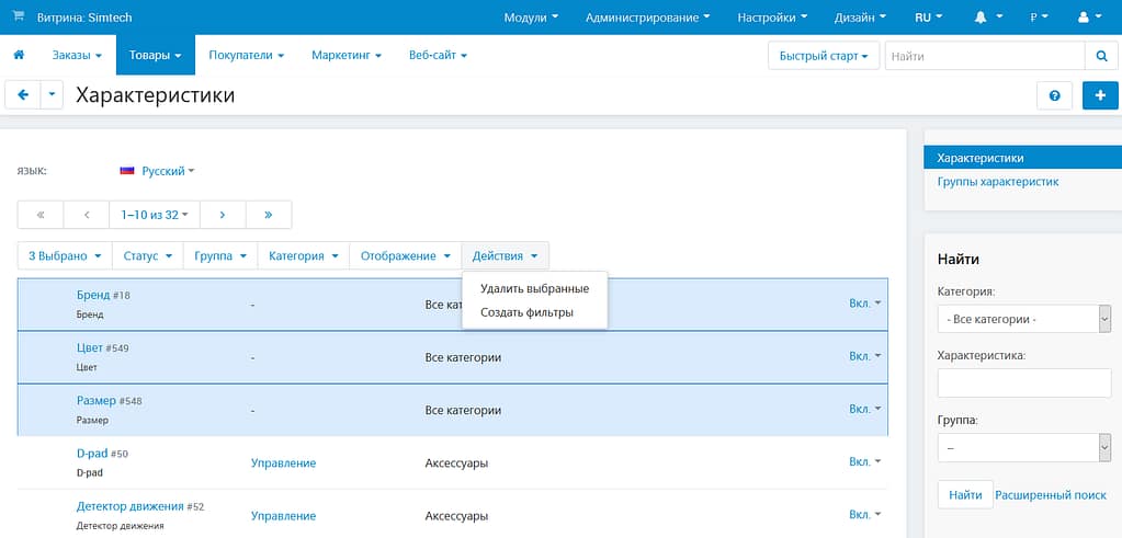 - При выгрузке характеристик из системы учёта они теперь привязываются к категориям тех товаров, с которыми они были выгружены.