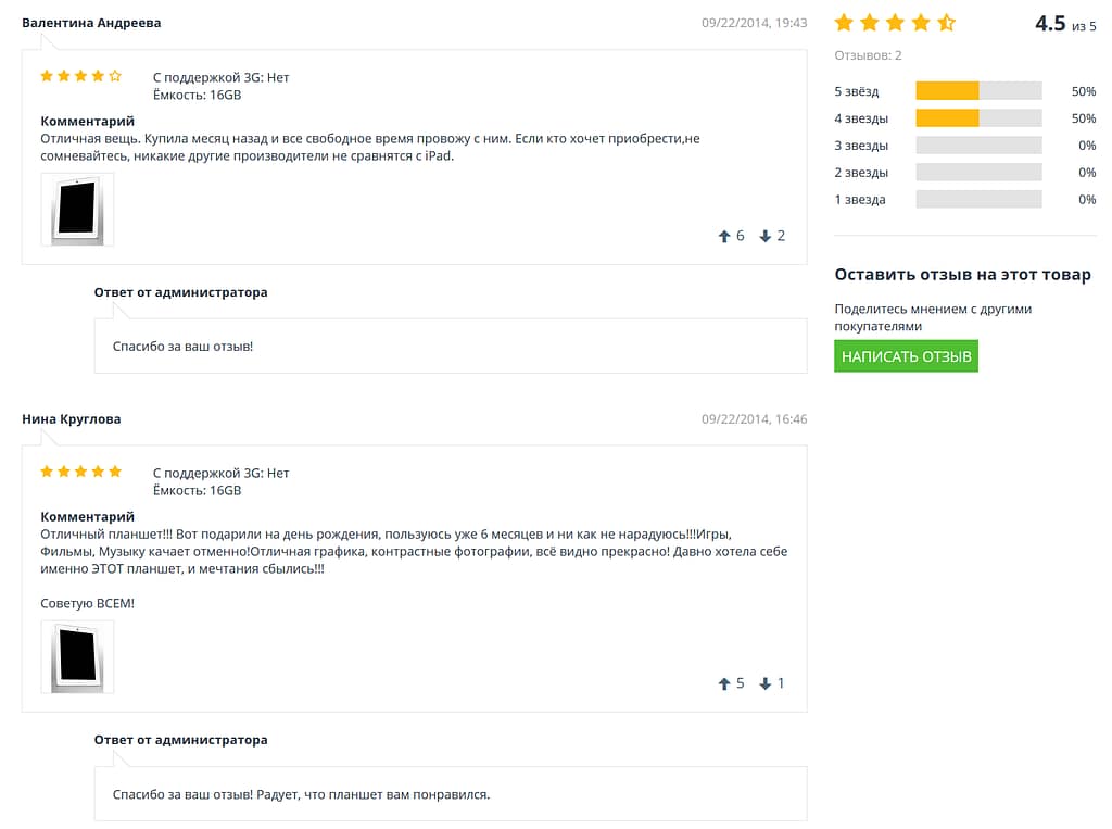 Отзывы о товарах с изображениями, голосованием, и пр.
